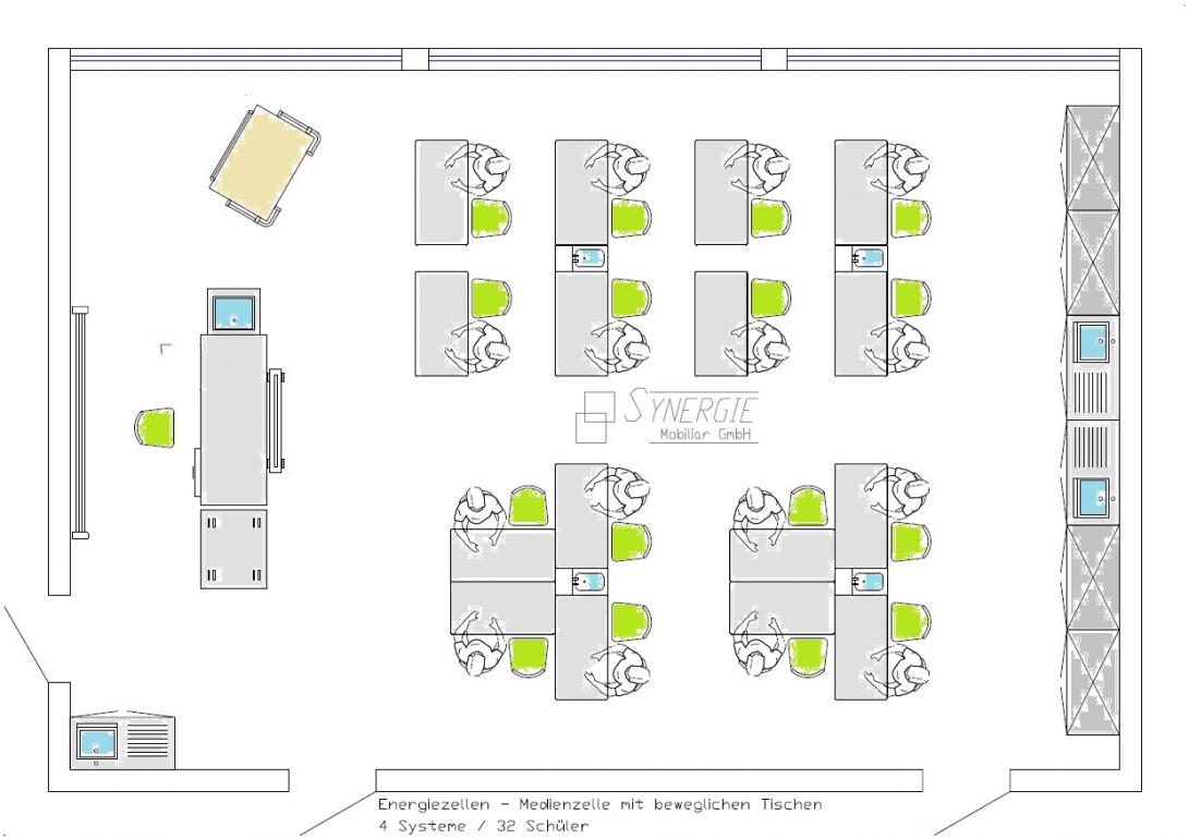 - Energiezelle - Medienzelle mit beweglichen Tischen, 8 Systeme